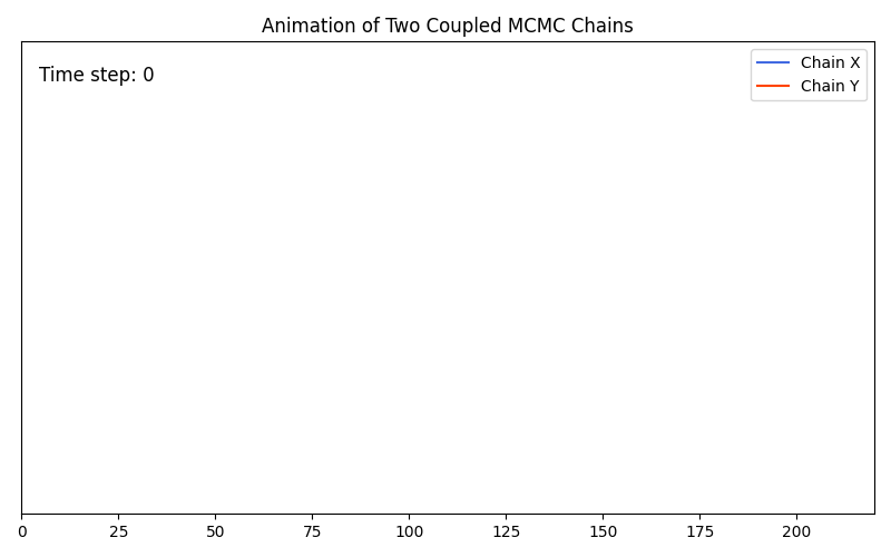 If \(X_{t+L} \sim \pi\) and \(Y_{t} \sim \mu_t\), then the meeting time \(\frac{\tau - t -L}{L}\) is an estimator of \(\|\mu_t - \pi\|_{\text{TV}}\).